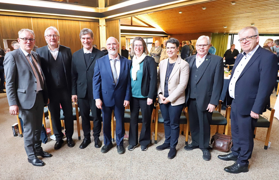 Eine gelungene Verabschiedung erlebten (von links) Volker Meyer, Landrat des Landkreises Diepholz, Claus Freye, Pastor Thorsten Nolting, beide Geschäftsführung Bethel im Norden, Frank Kruse und Ehefrau Tanja Kruse-Röhsler, Stefanie Schwinge-Fahlberg, Geschäftsführung Bethel im Norden, Heinrich Kammacher, Bürgermeister der Samtgemeinde Kirchdorf und Pastor Ulrich Pohl, Vorstandsvorsitzender der v. Bodelschwinghschen Stiftungen Bethel.