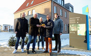 Die symbolische Schlüssel-übergabe der Stadt Diepholz an den Unternehmensbereich Bethel im Norden fand Anfang Januar statt (von links): Projektleiter Marco Beneking, Claus Freye, Martin Hoppe, Bereichsleitung Einglieder-ungshilfe Bethel im Norden, Diepholz Florian Marrè und der Diepholzer Bauamtsleiter Sebastian Dornieden. Unten: Das ehemalige Hotel Steuding mit Blick auf den Diepholzer Bahnhof.