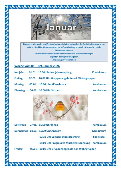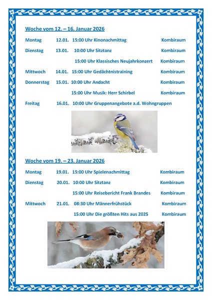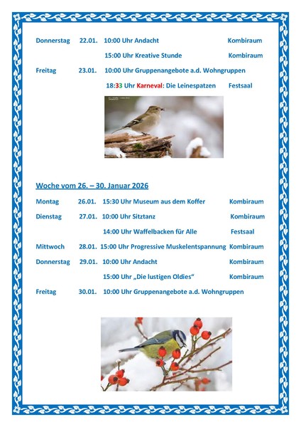 Hier der Veranstaltungskalender für den Januar 2026 - bitte die einzelnen Bilder einfach anklicken, um sie zu vergrößern! Darauf sind dann alle Termine zu finden.